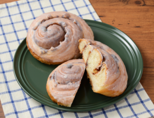 デニッシュと相性のよいブルーベリージャムを巻き込んだロールパンです。