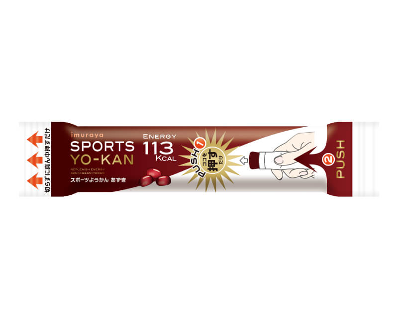 井村屋のスポーツようかんは、片手で押すだけで封を開けられて、手軽にエネルギーチャージができるようかんです。