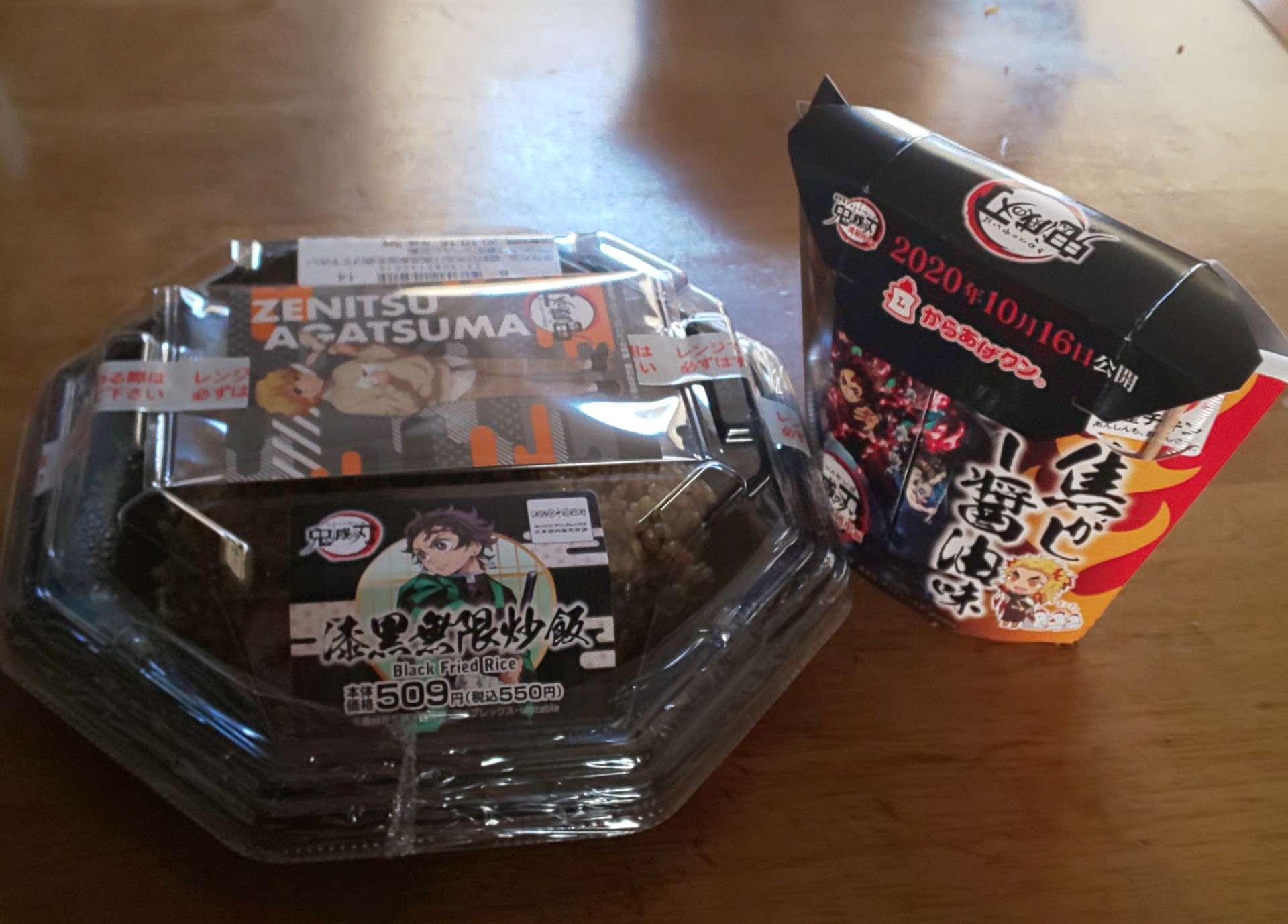 鬼滅の刃のキャンペーン商品を見ていると、黒く炒められた炒飯と、勇ましく闘う炭治郎くんの姿が描かれたからあげクンを発見!