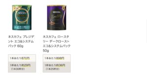 1杯あたり54円〜61円とエコ&システムパックよりはお高めですが、コンビニのコーヒーが安くても100円なので、それに比べるとリーズナブル。