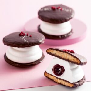 香ばしいグラハムクッキーにハイカカオのベルギー産クーベルチュールチョコレートをコーティング。間にマシュマロとイタリア産アマリーナチェリーを包みました。