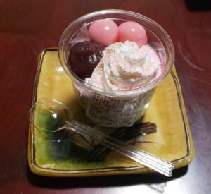 セブンイレブンの商品棚を見ると、桜色の白玉が美味しそうなパフェを見つけ、さっそく購入しました。